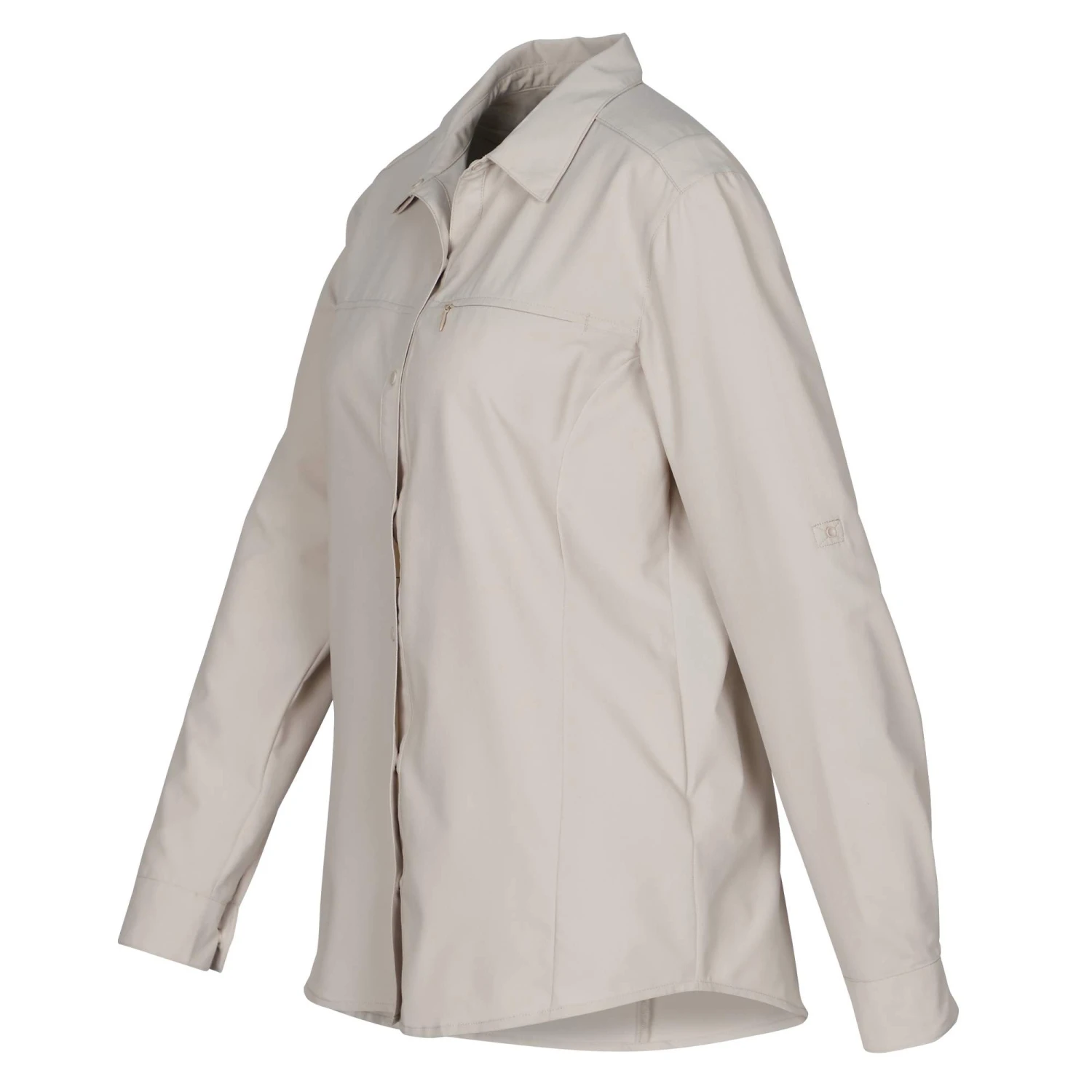 Ebenfalls nicht zu vernachlässigen ist die Möglichkeit, die Ärmel aufzurollen und dann per Lasche und Knopf zu fixieren. Zweckmäßig und einfach, um zusätzlich für Lüftung zu sorgen. Unter den Achseln hat die Bluse zudem eine Belüftung.