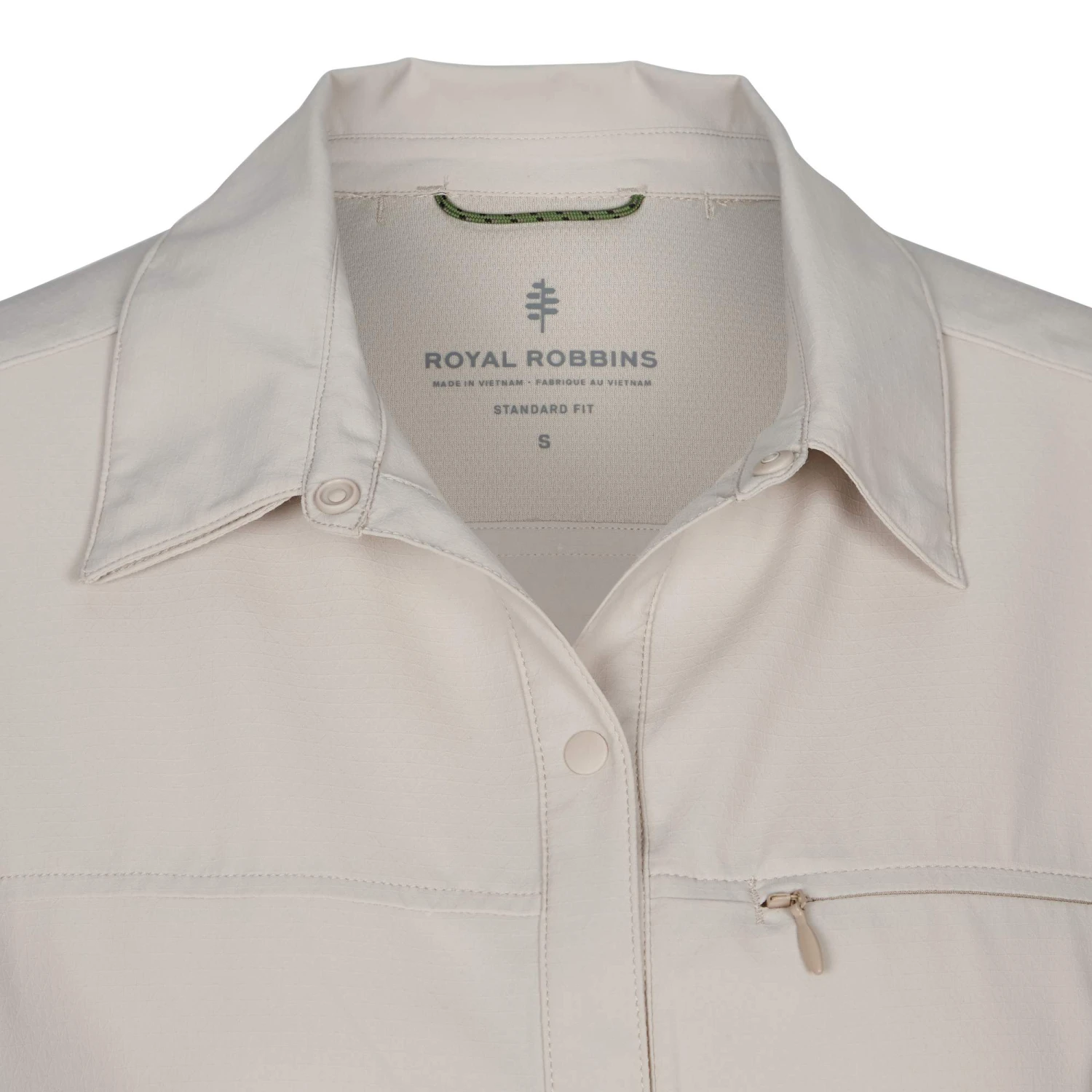 - Reisebluse mit Insect Shield (enthält Permethrin), HeiQ Stain Away und HeiQ Smart Temp